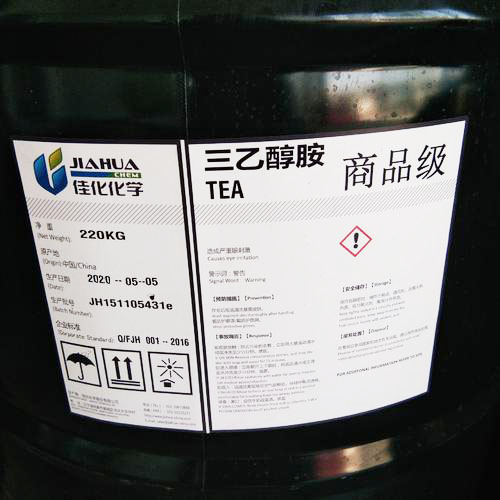 【物化性質(zhì)】熔點(diǎn)21.2℃,沸點(diǎn)360.0℃,227℃(20kPa),相對密度(20/4℃)1.1242,動力粘度(25℃)613.3mPa?s,折射率(nD20)1.4852,閃點(diǎn)193℃。三乙醇胺能與水、甲醇和丙酮混溶。在25℃時的溶解度為:苯4.2%,乙醚1.6%,四氯化碳0.4%,正庚烷小于0.1%。微有氨的氣味,極易吸潮,三乙醇胺能吸收空氣中二氧化碳,露置空氣中以及在光線下變成棕色
